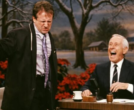 Remember the legendary Tonight Show Christmas episode, where Robin Williams walked onstage and, within minutes, pushed Johnny Carson into the hardest, most UNCONTROLLABLE LAUGHTER of his entire career — a wild, holiday-fueled burst of improv so fast, so reckless, so brilliantly unhinged that even the unshakeable King of Late Night completely broke, wiping tears, gasping for breath, and slamming his desk as millions watched in disbelief; decades later, producers still insist they’ve never seen Carson lose himself like that again, turning this short clip into one of the most replayed, most debated, and most beloved moments in the history of live television