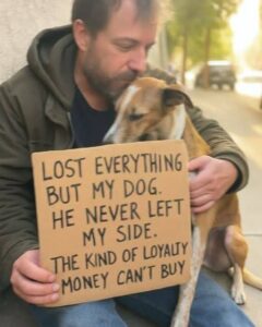 I wrote a sign—not to beg, but to explain. People saw the dirt, not the dog who saved me.