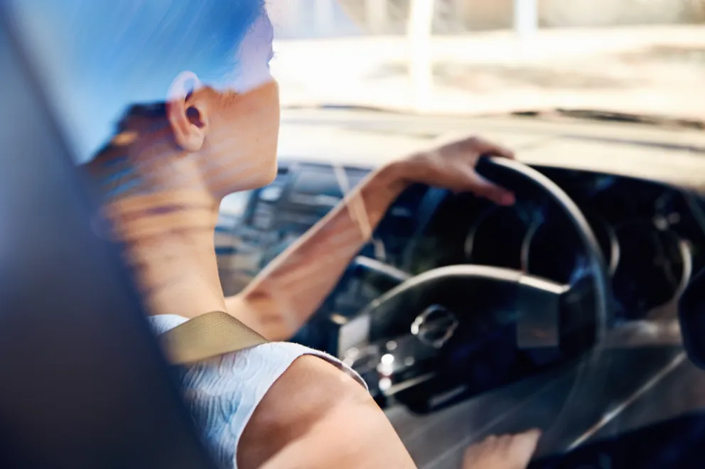 Woman driving car through city. | Source: Shutterstock