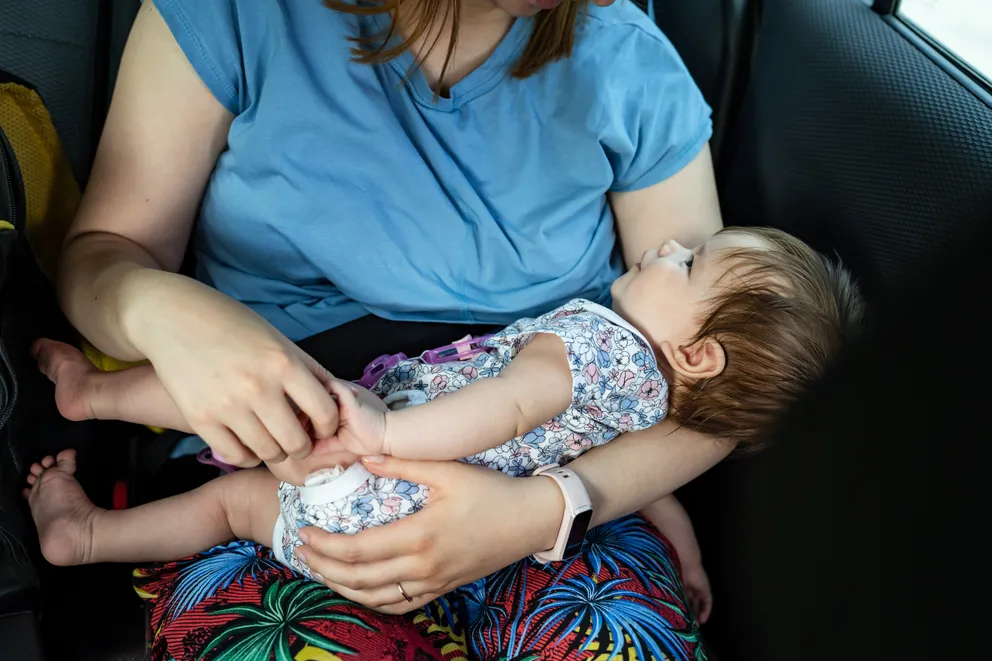 Baby four months old in the lap of her unknown mother holding her on the back seat of the car. | Source: Shutterstock