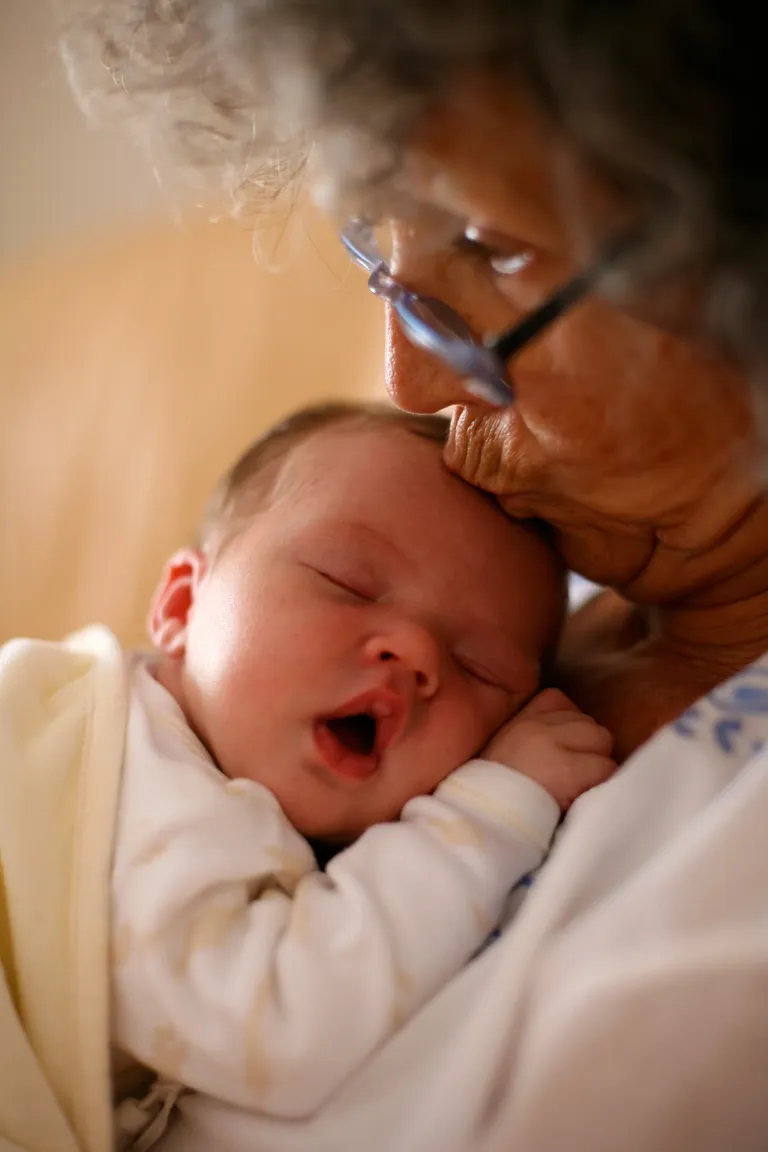 Grandma holding a baby and kissing it on it’s head. | Source: Shutterstock