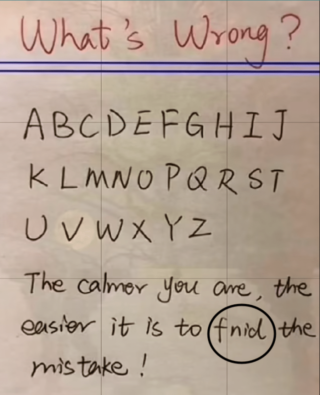 It might help to think of the Alphabet Song while examining this picture to ensure all the letters are in the correct order.