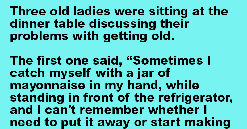 The first one said, “Sometimes I catch myself with a jar of mayonnaise in my hand, while standing in front of the refrigerator, and I can’t remember whether I need to put it away or start making a sandwich.”