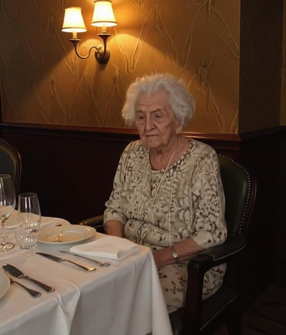 Fifteen minutes later, I returned to the table. Nana was sitting there alone, clutching her purse, her eyes wide and worried as she looked around.